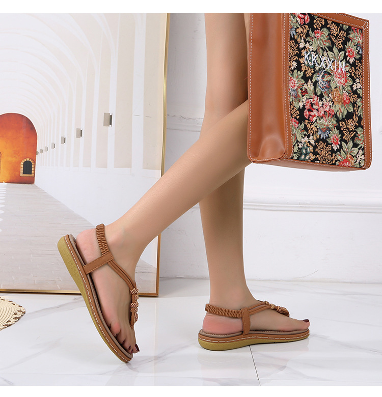 Discover the perfect blend of comfort and style with our Bohemian Wooden Bead Woven Plus Size Flat Shoes. Crafted with care, these shoes feature a unique ethnic pattern that adds a touch of flair to any casual outfit. The round toe design ensures a comfortable fit, while the elastic band wearing style allows for easy on-and-off convenience.