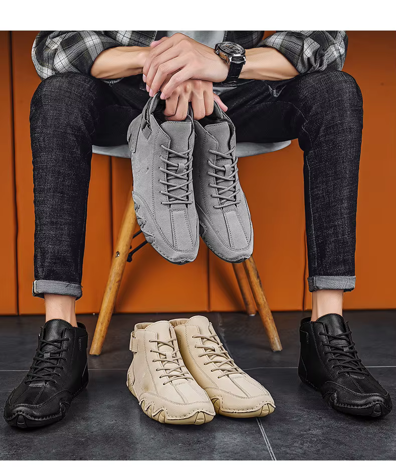 Le cuir premium garantit une durabilité maximale et un look intemporel. Notre design privilégie la santé de votre pied : zéro-drop pour un alignement parfait et une boîte à orteils large (forme de bout rond) pour laisser vos orteils s'épanouir. La semelle antidérapante assure une adhérence fiable sur tous les terrains. Disponibles en Khaki, Gris et Noir, du 36 au 50.